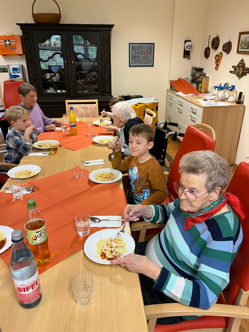 Davon profitieren die älteren Menschen, sie erfreuen sich an der Aufmerksamkeit, Aufgewecktheit und Kreativität der Kleinen.