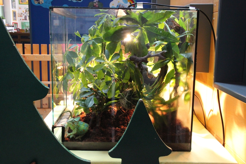 In unterschiedlichen Geschichten hören die Kinder wie das kleine Chamäleon wächst und immer größer wird.